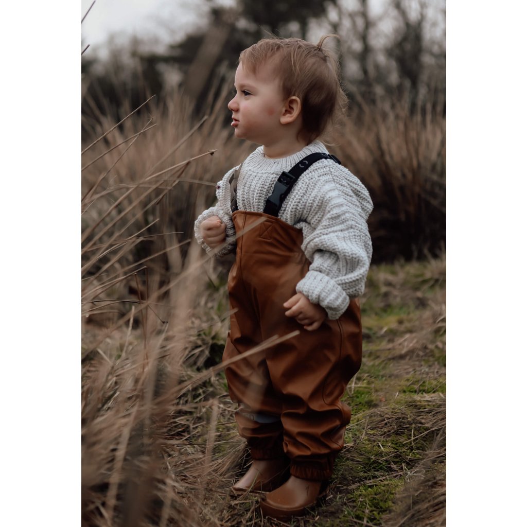Díky 100% voděodolnému materiálu s vodním sloupcem 5 000 mm a svařovanými švy je oblečení zcela nepromokavé. To znamená, že vaše dítě může skákat v kalužích, lézt po mokré trávě nebo si hrát na pískovišti bez obav z promáčení. Měkká podšívka kolem krku zajistí příjemný pocit při nošení, zatímco elastické manžety a nastavitelné šle umožňují maximální svobodu pohybu. -