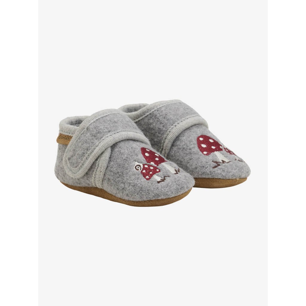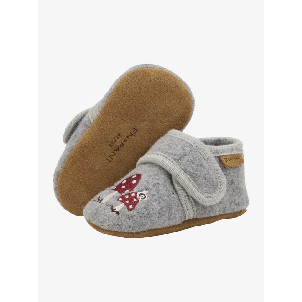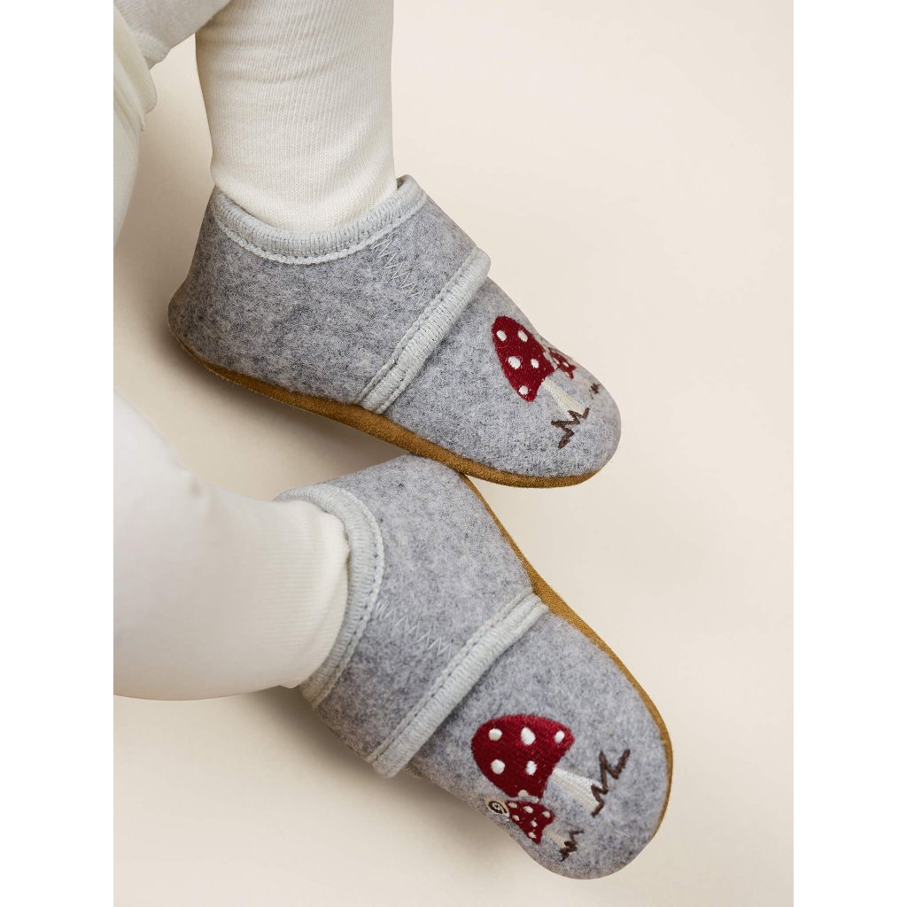 Dětské bačkůrky (capáčky) 100% vlna En Fant - šedé s výšivkou Muchomůrka