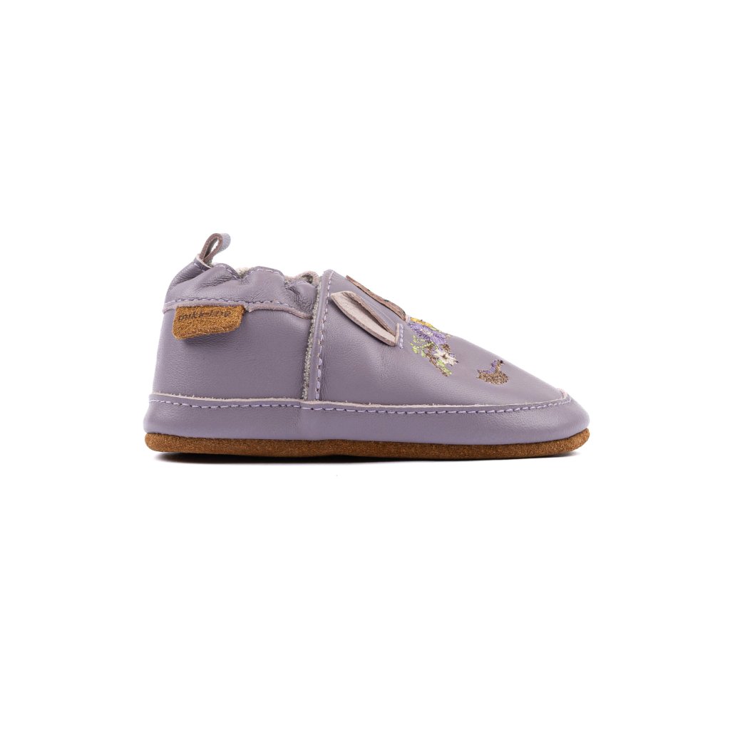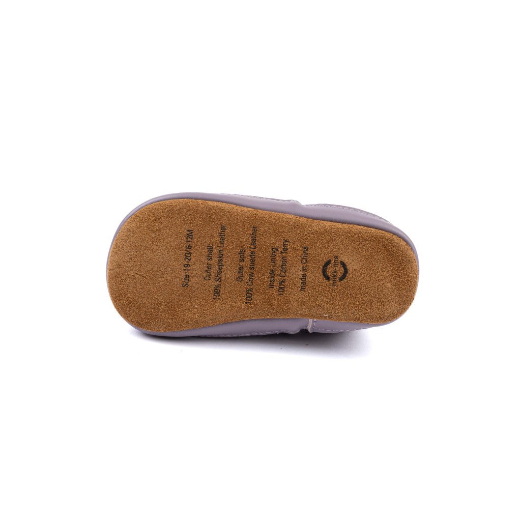 Díky širokému střihu mají dětské nožičky dostatek prostoru pro přirozený pohyb, zatímco pevné uchycení kolem kotníků zajišťuje, že bačkůrky perfektně sedí a nesklouzávají. Protiskluzová podrážka z kravské semišové kůže zajišťuje bezpečnost i na kluzkých podlahách, což oceníte při každém kroku vašeho malého průzkumníka.