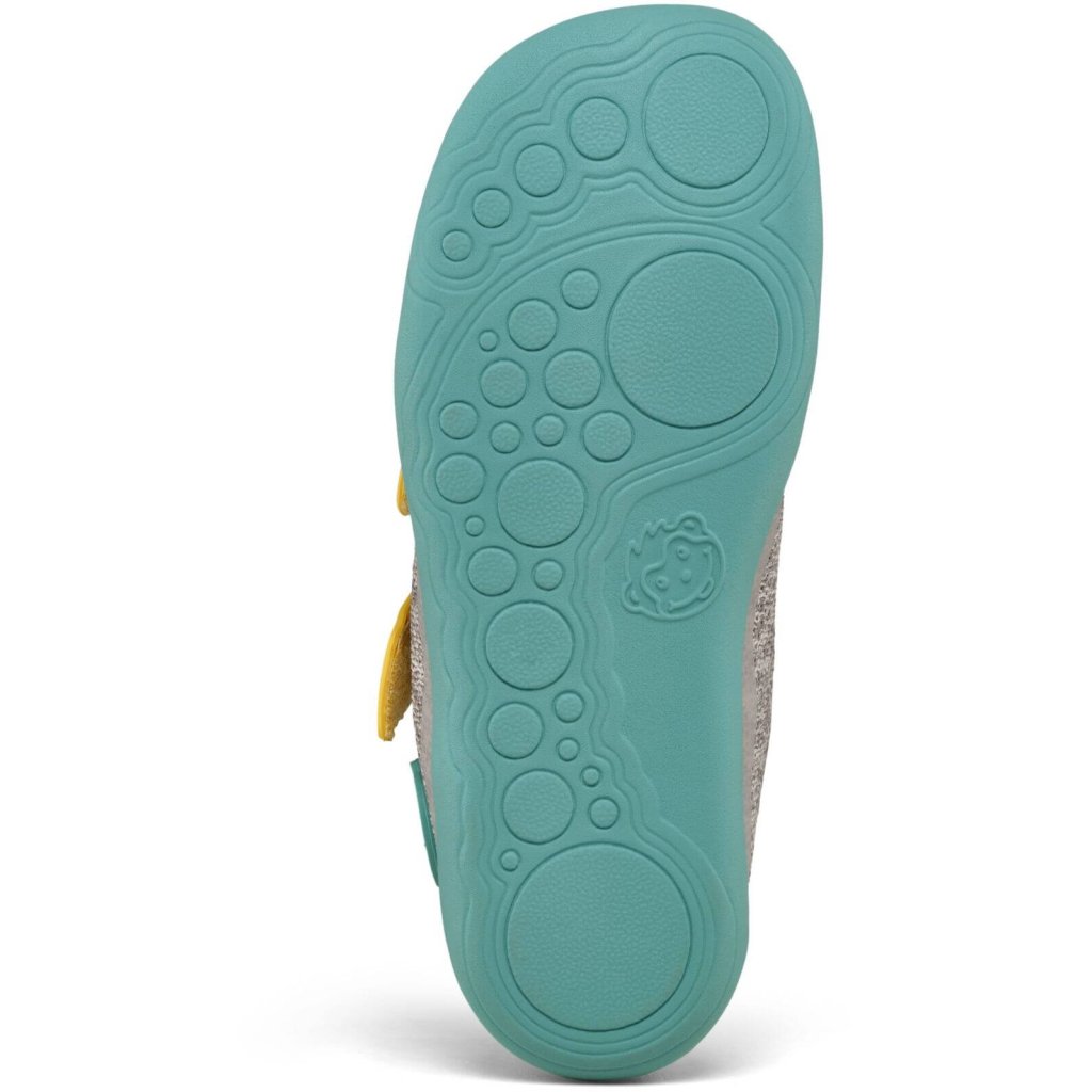 Podrážka je tenká, flexibilní a protiskluzová, takže umožňuje přirozený pohyb chodidla a zároveň poskytuje jistotu při chůzi. Praktické zapínání na dva suché zipy umožňuje boty snadno nazout a dobře přizpůsobit noze.