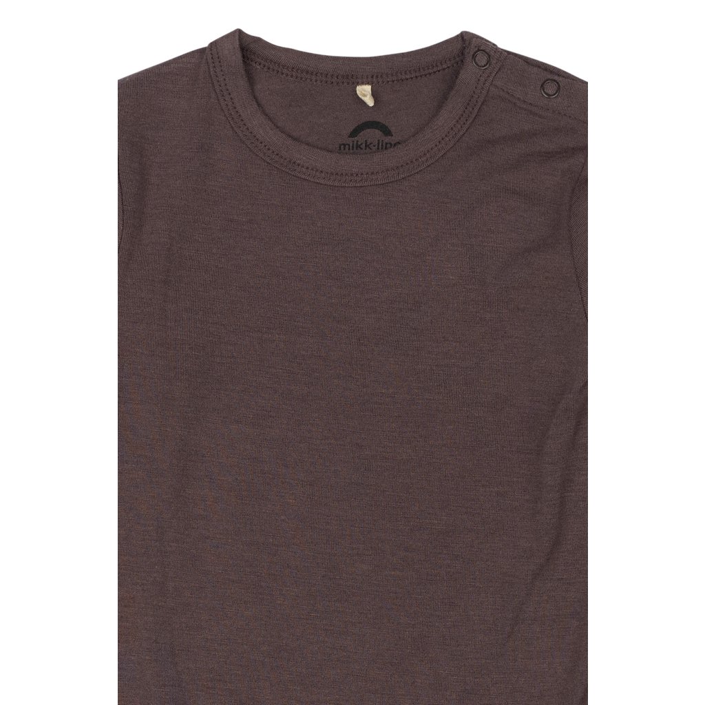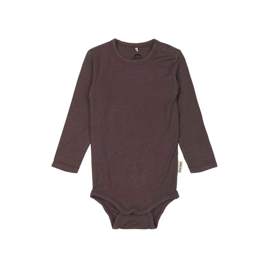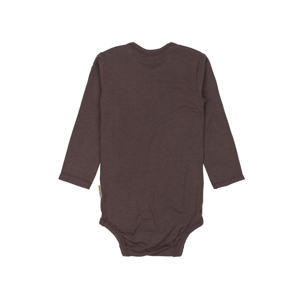 Dětské body dlouhý rukáv z merino vlny a bambusu hnědé Sparrow Mikk-Line