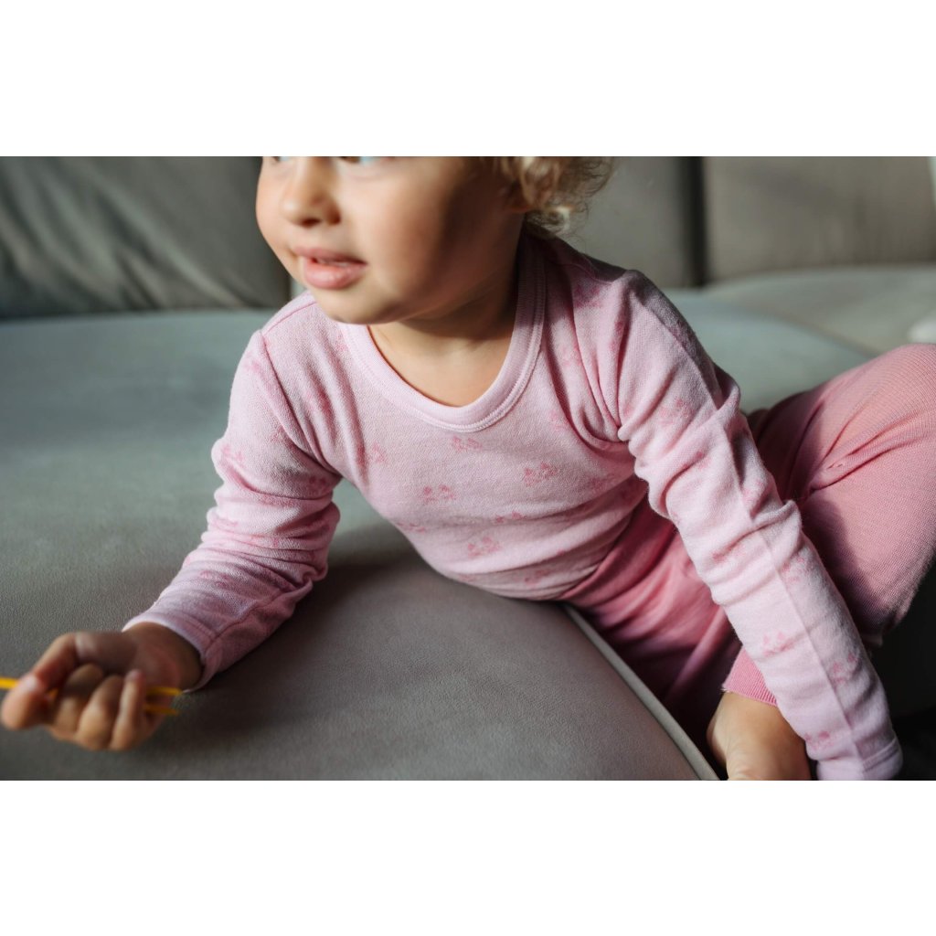 Dětské merino body ze 100% merino vlny dlouhý rukáv Jaquard SAFA - růžové