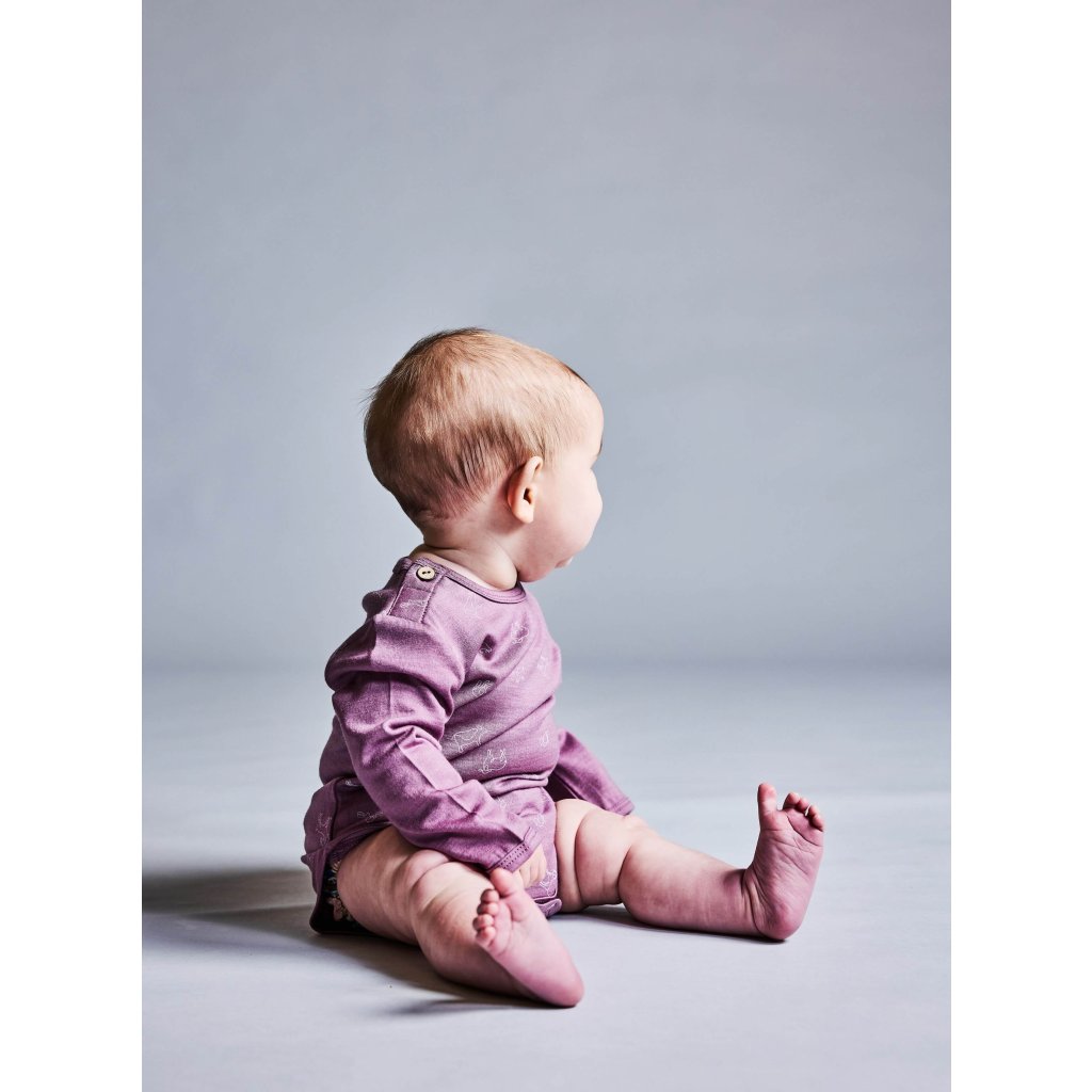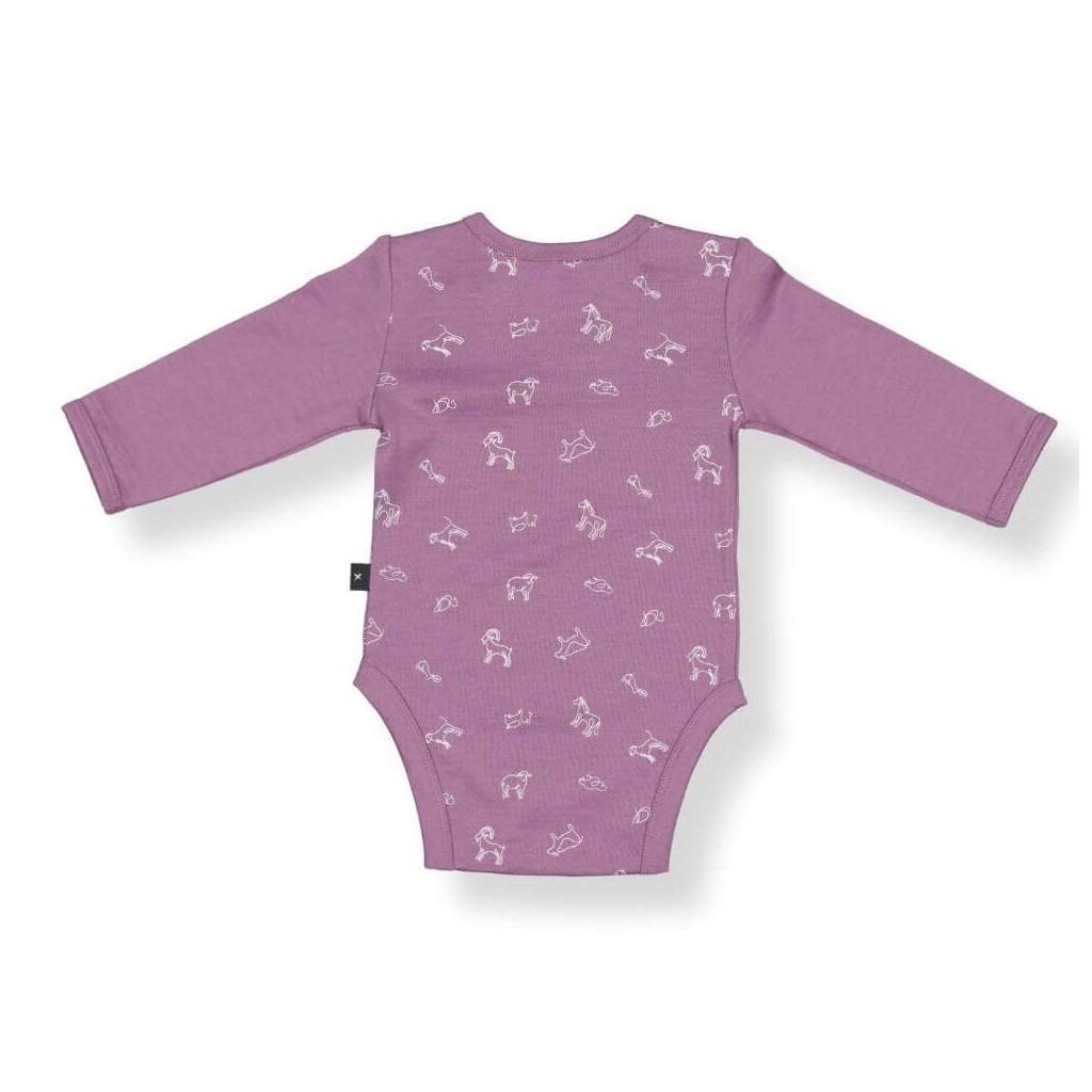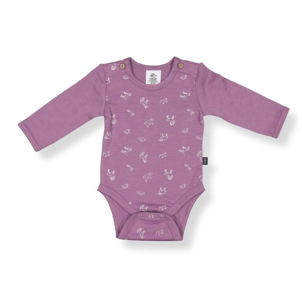 Dětské merino body ze 100% merino vlny dlouhý rukáv Mauve Animal LFOH