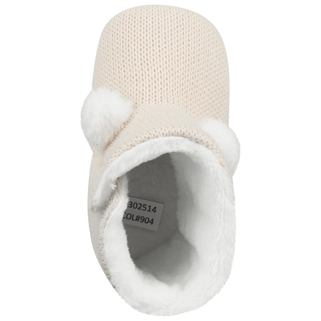 S těmito roztomilými botičkami ve stylu medvídka zůstanou nožičky vašeho děťátka zaručeně v teple. Botičky zaujmou svým pleteným vzhledem a roztomilými 3D medvědími oušky, které jim dodávají osobité kouzlo. Vnitřek je kompletně podšitý měkkým plyšem (100% polyester), který zajistí maximální pohodlí. Vnější materiál je vyroben ze 100% bavlny.
