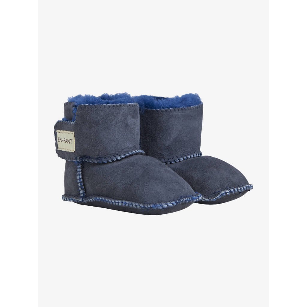 Dětské zateplené capačky z jehněčí kůže EN FANT - modré Navy