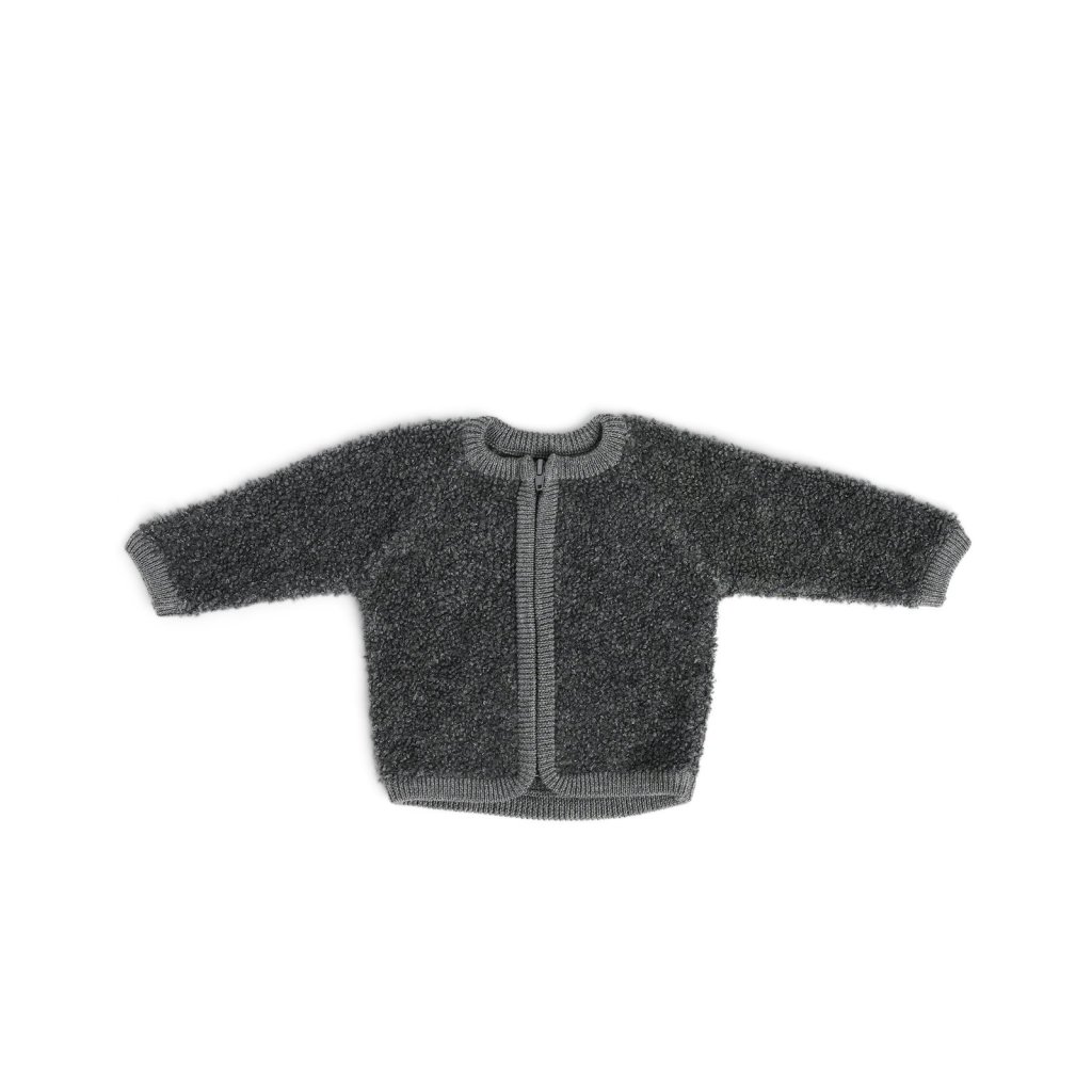 Dětský cardigan z bouclé merino vlny na zip Smallstuff - grey melange