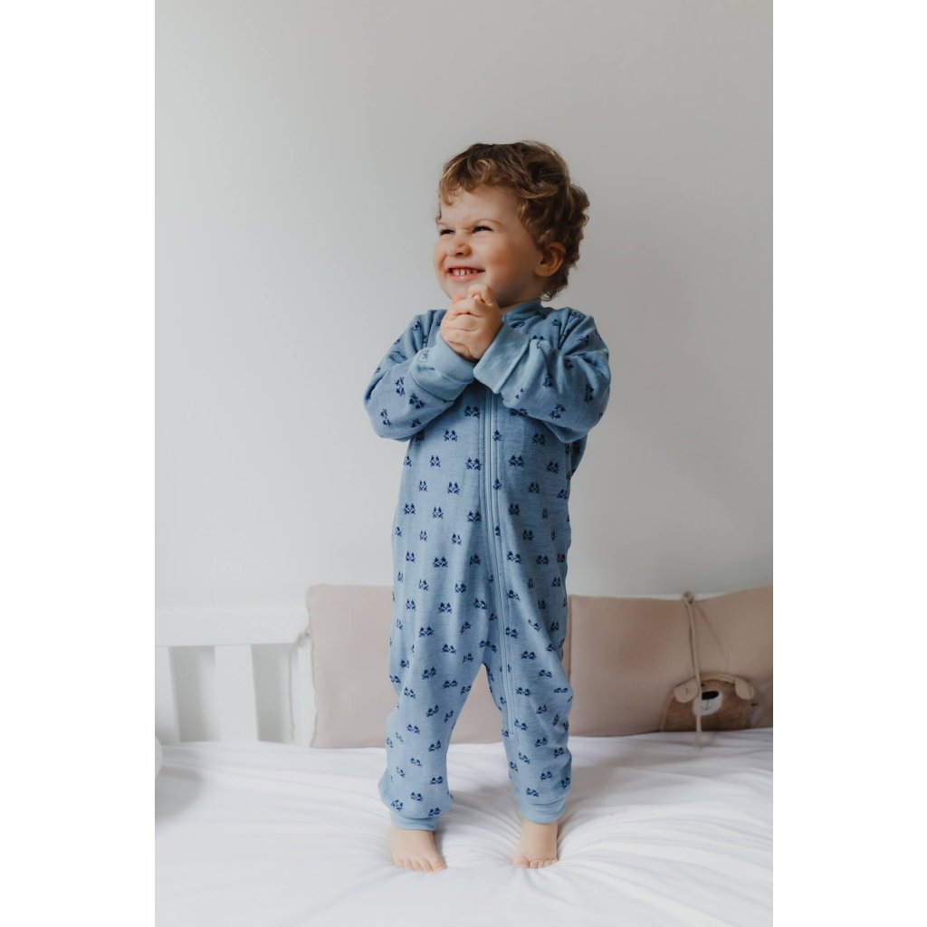 Dětský rostoucí overal/pyžamo ze 100% merino vlny Jaquard SAFA - modrý