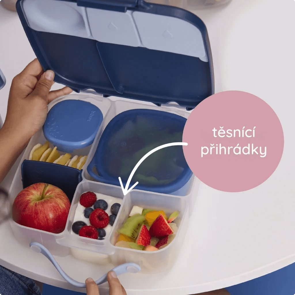 Velký svačinový box značky b.box nabízí skutečně prostorné řešení pro svačinu, oběd nebo celodenní výlet — ideální jak pro děti ve škole, tak pro dospělé do práce či na cestu. Australská značka b.box staví na kombinaci stylu, funkčnosti a bezpečných materiálů, a tento box je toho skvělým příkladem.