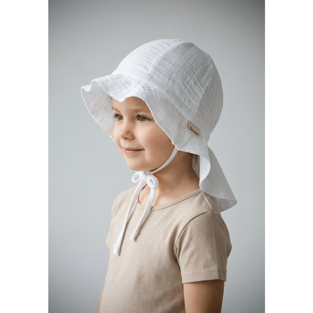 Dětský sluneční klobouček z jemného bavlněného mušelínu je ideální volbou pro teplé jarní a letní dny, kdy je potřeba chránit citlivou dětskou pokožku před sluncem a přehřátím. Lehký a vzdušný mušelín ze 100% bavlny je mimořádně příjemný na dotek, přirozeně prodyšný a vhodný i pro velmi citlivou pokožku miminek a malých dětí.