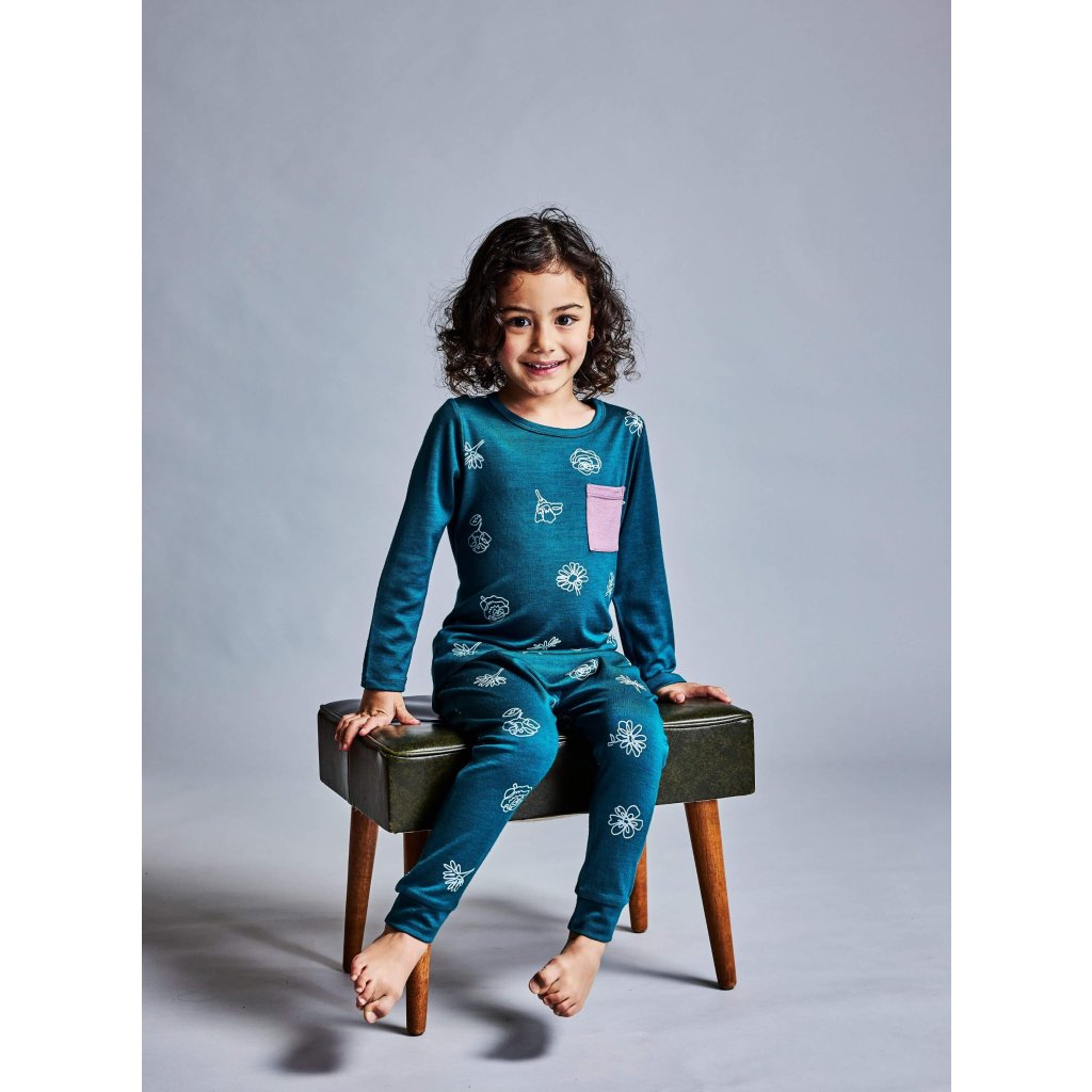 Dvoudílné pyžamo ze 100% merino vlny Jade Wildflower LFOH