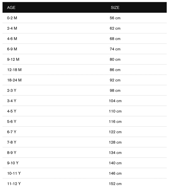 Chcete dětem pořídit kombinézu na příští zimu? Podívej se na orientační tabulku velikostí výrobce podle věku dítěte: