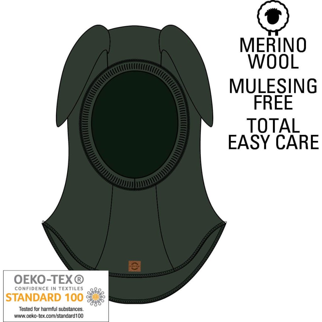 Merino vlna je známá svými výjimečnými vlastnostmi: dokáže vás zahřát v chladu a příjemně ochladit v horku. Jeho antibakteriální charakter zase zabraňuje vzniku nepříjemných pachů. Navíc je tato kukla díky své měkkosti příjemná na dotek.