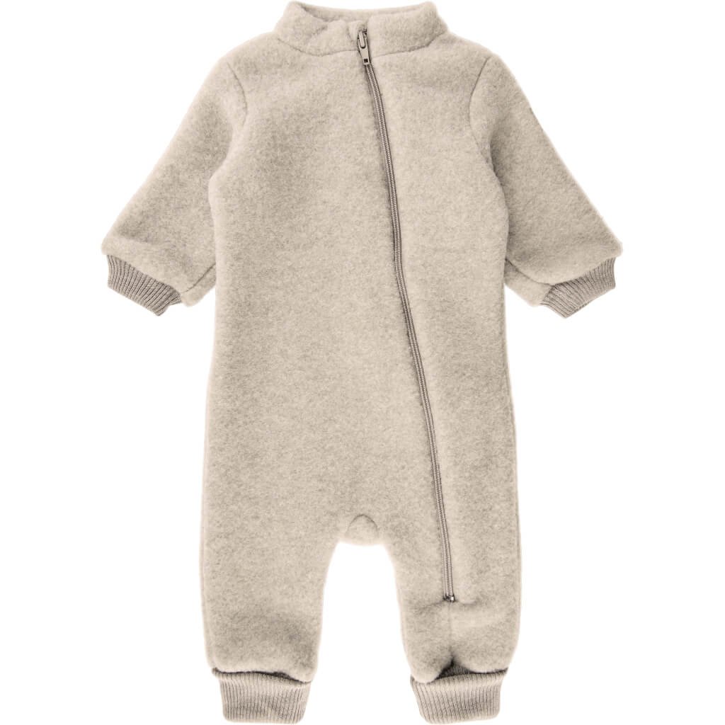 Merino overal na zip bez kapuce ohrnovací hnědý Melange Offwhite Mikk-Line