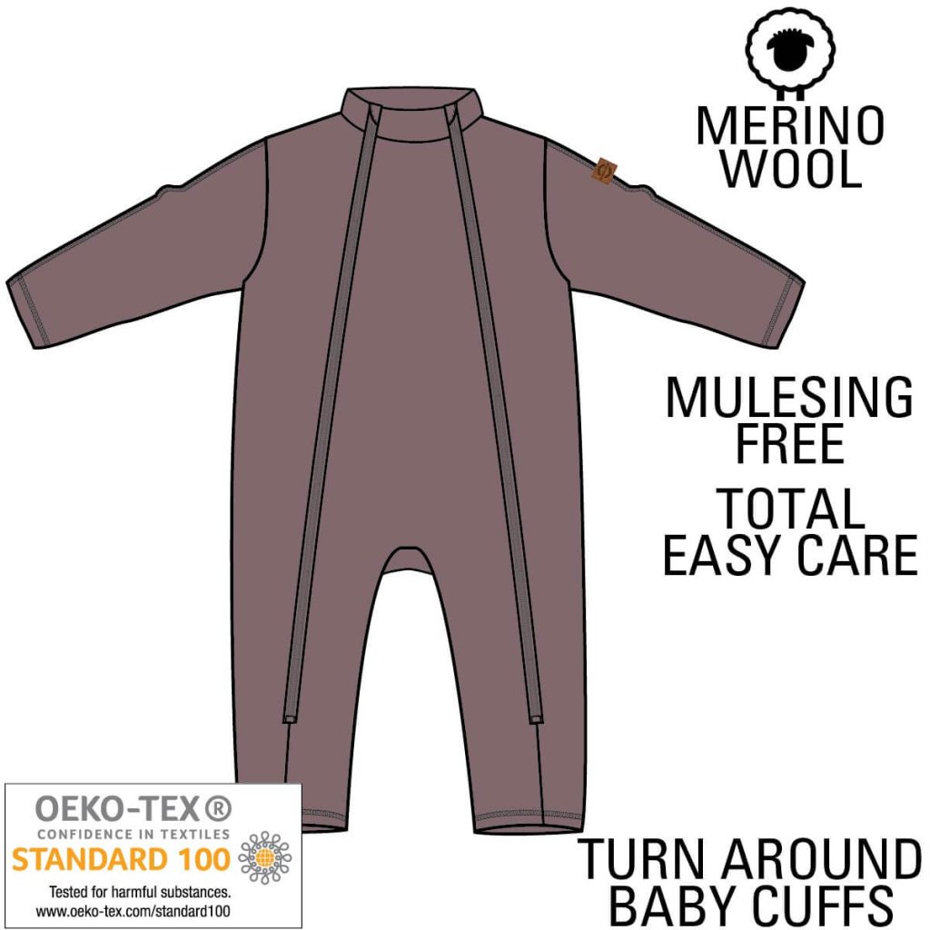 Mikk-line dětský merino overal s dvojitým dlouhým zipem pro snadné oblékání i těch nejmenších miminek. Dlouhý a hladký YKK zip, který se táhne od krku až k dolní části nohy. Ochrana brady na zipu zajišťuje, že při zapínání nedojde k podráždění jemné dětské pokožky.
