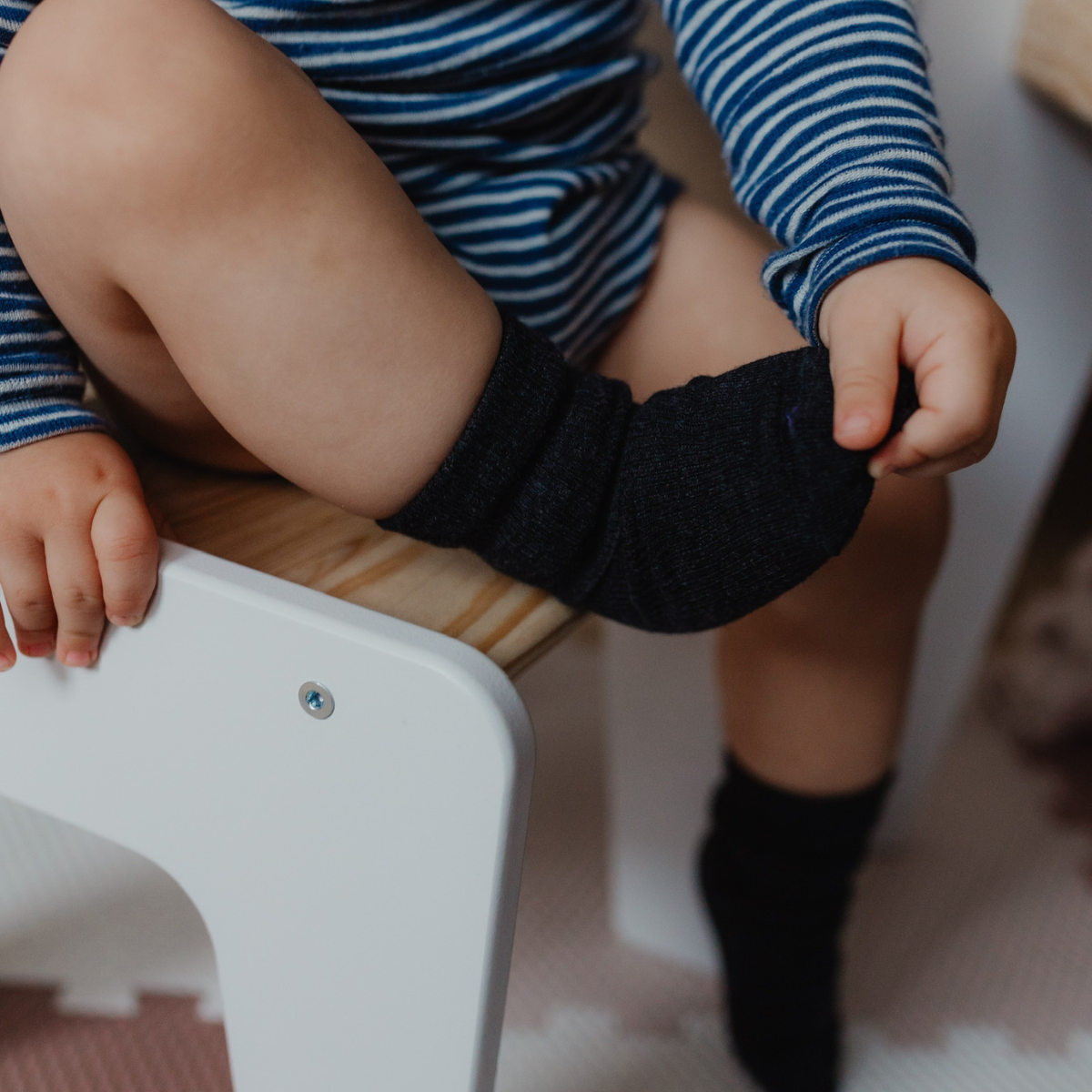 Tenké merino ponožky – výborné na běžnou zimu. Merino umí regulovat teplotu, odvádí pot. Díky tomu nožka nezůstává mokrá a nezačne studit, i když dítě řádí ve sněhu.