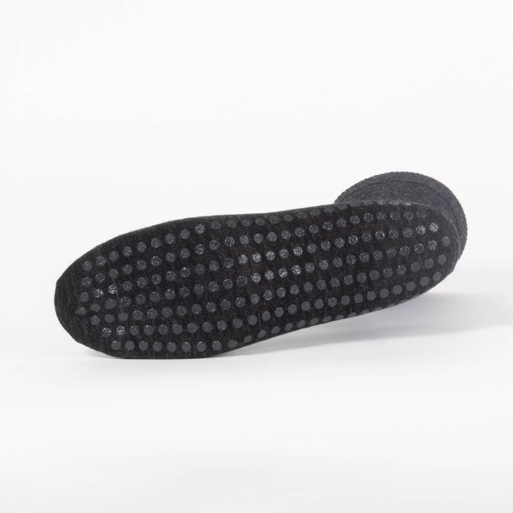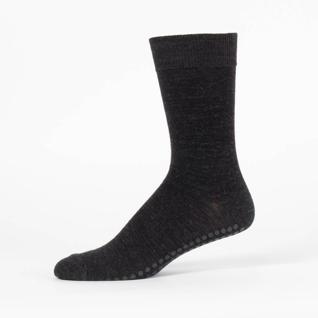 Tyto tenké, hladce pletené pánské merino ponožky jsou navrženy s důrazem na pohodlí a praktičnost. Díky protiskluzovým bodům na podrážce zajišťují bezpečnost na kluzkých podlahách a jsou perfektní volbou pro nošení doma místo přezůvek. Navíc mají beztlakový lem, který nikde netlačí a neomezuje krevní oběh, což oceníte při celodenním nošení.