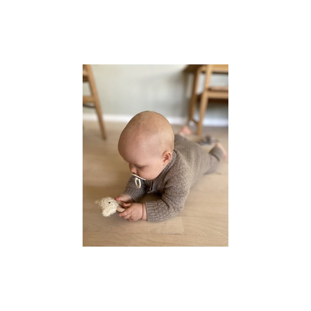 Overal je vyrobený z té nejjemnější merino vlny s krásnou pletenou strukturou, která je extrémně měkká na dotek a nedráždí ani tu nejcitlivější pokožku. Na rozdíl od běžné vlny merino nekouše a je velmi šetrné. Jeho design s pohodlnými dřevěnými knoflíky na přední straně usnadňuje každodenní oblékání a svlékání.