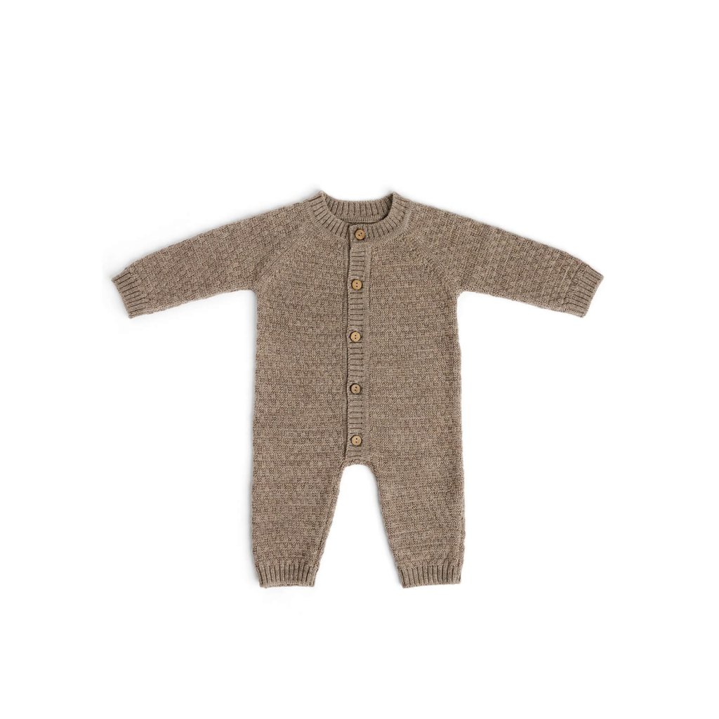 Pletený overal z merino vlny pro děti hnědý Nature melange Smallstuff