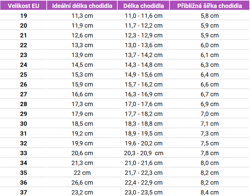 Tabulka velikostí boty Affenzahn