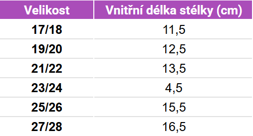 Tabulka velikostí En Fant Dětské vlněné bačkůrky