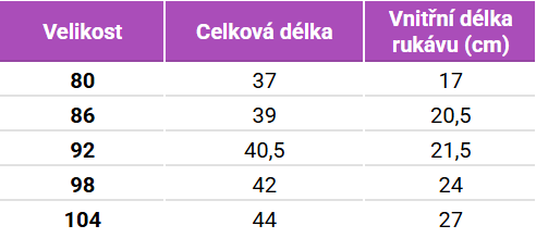 Tabulka velikostí
