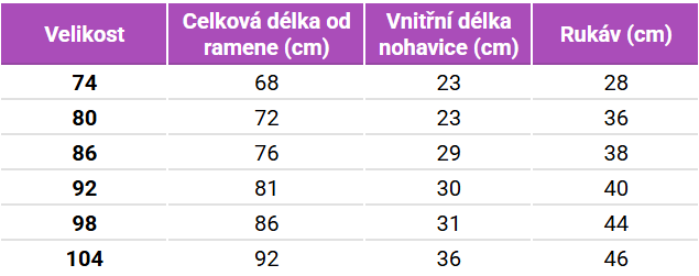 Tabulka velikostí Color Kids Kombinézy